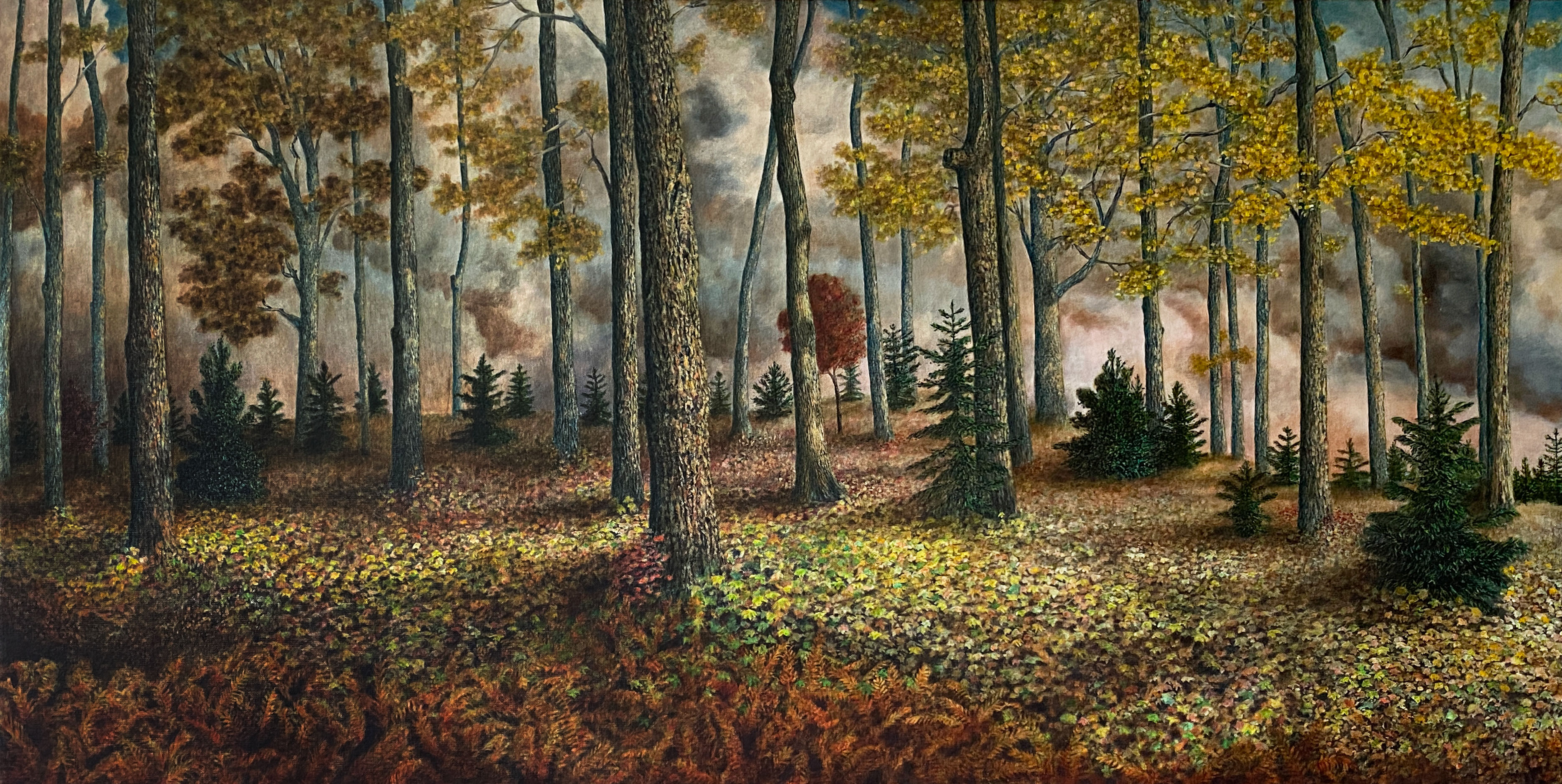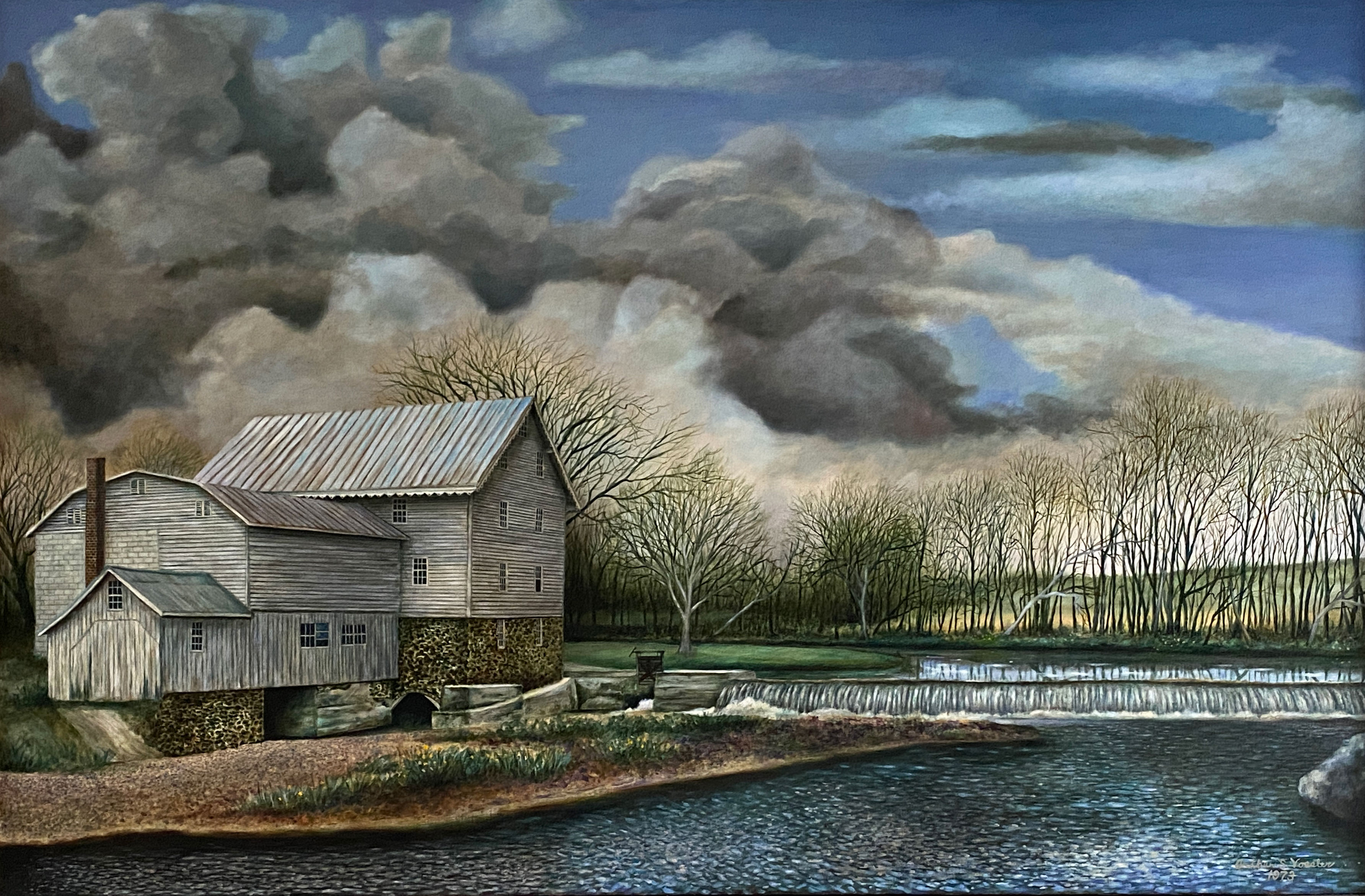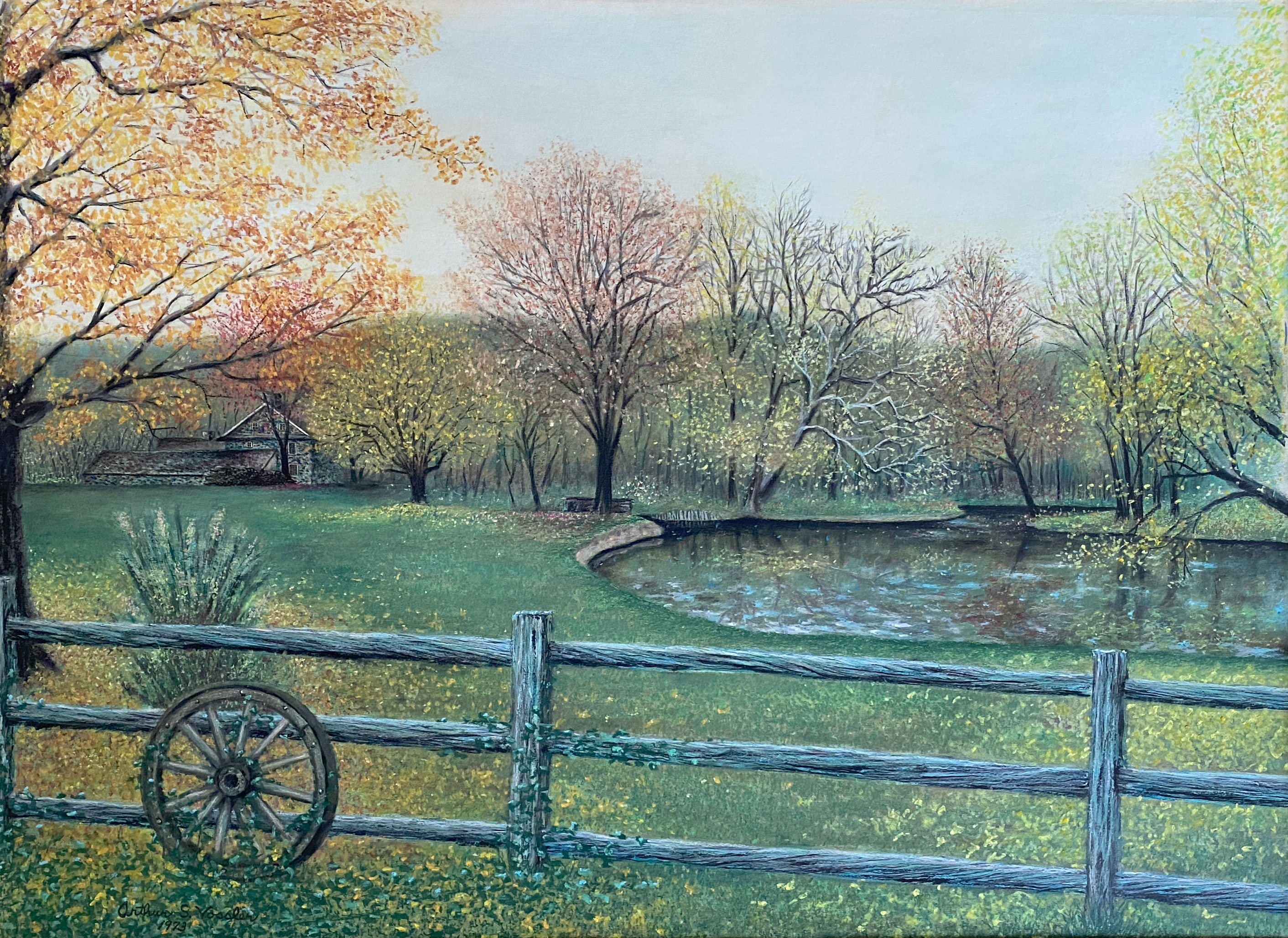 This painting is based on Foxhill Bridge at Foxhill Lake in Bowie, MD, though many elements were created from his imagination.