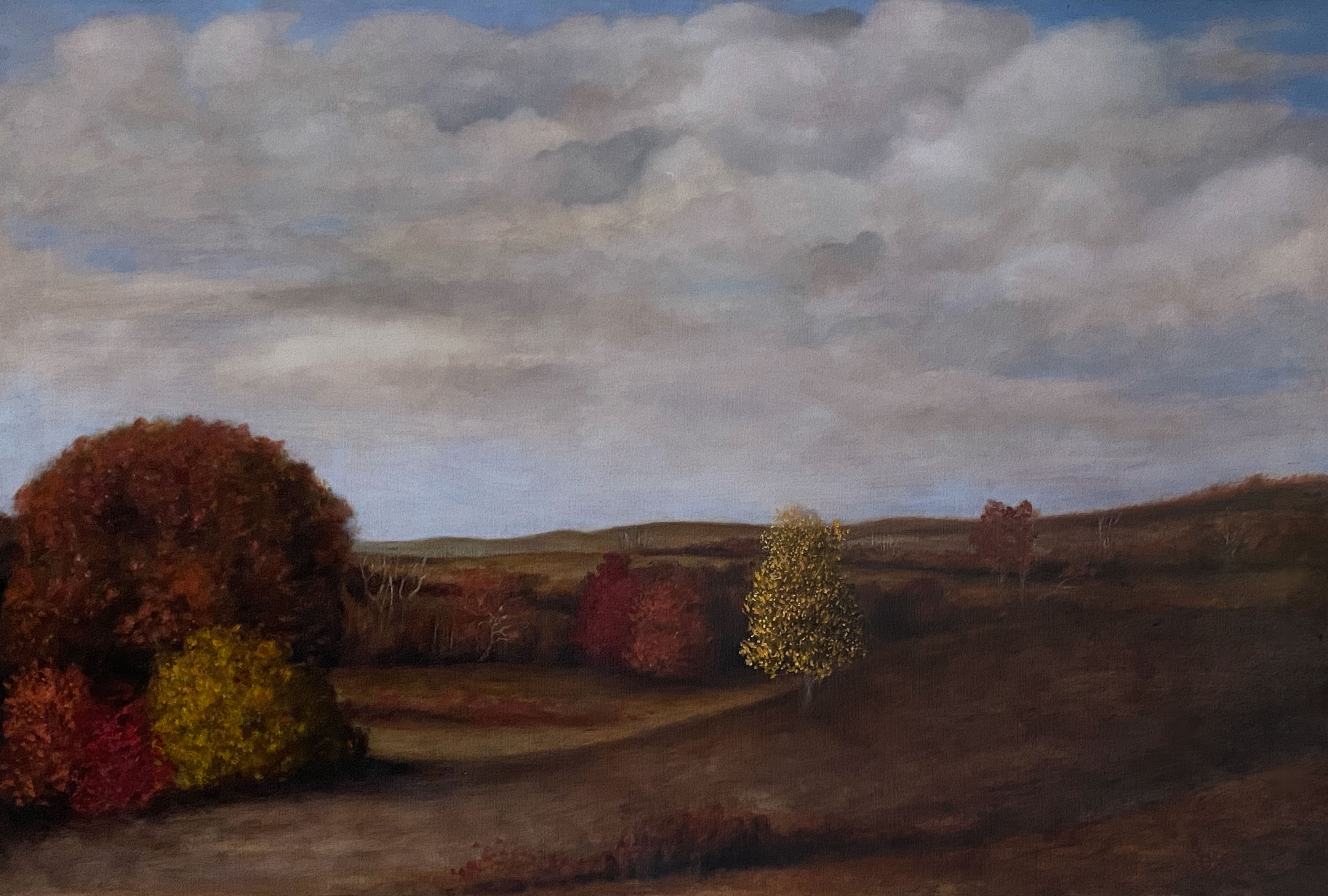 Dad of course admired many artists, one of them being Andrew Wyeth. We went to the Brandywine River Museum in Chadds Ford, PA several times to see their large collection of Andrew Wyeth’s work. On one trip, we drove by this property because dad thought for some reason that it was associated with Andrew Wyeth or the Wyeth family. I don’t know if it did, but he took a picture of it and created this beautiful fall scene.